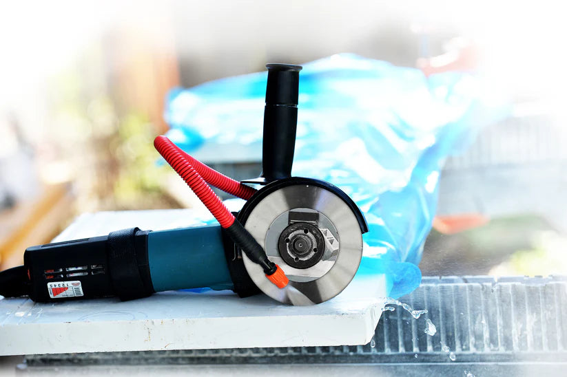 Hydro-Tail™ is a universal controlled water attachment that easily adapts to all tools for extreme dust mitigation especially on tile, stone, brick, and block. Hydro-Tail™ also dramatically increases the life of expensive diamond blades and bits. Hydro-Tail™ is fast, effective and affordable.